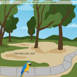 - Borra las comillas en el .say() para que el sprite diga el valor almacenado en fav_color .