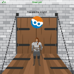- Usa Say y el planificador para que el sprite diga el mensaje de resultado para el caballero.