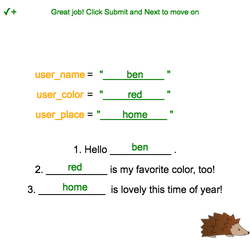 DEMO 1: In this interactive activity, you'll see how variables can store and reuse "strings".
