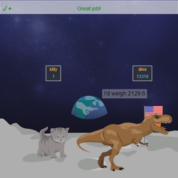 - Use a Say command to have the dino_sprite say how much it would weigh on the moon.