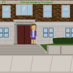 - Cambie el nombre de la variable en el comando .glide_to() para que ms_martin se deslice hacia la entrada de la escuela.