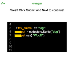 - Click Run and follow the directions on stage to see how to properly indent your code.