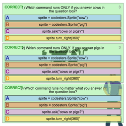 - Use your experience from the last activity and the code in the editor to answer the multiple choice questions.