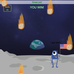 - Use an if statement in the collision event to post the text "You Win!" once the score reaches 25.