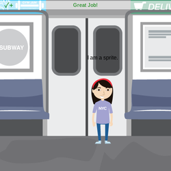 stage.set_background("subway") sprite = codesters.Sprite("person10") sprite.move_down(75) sprite.flip_up_down() sprite.move_right(200) sprite.move_left(150) sprite.flip_up_down() stage.wait(2) sprite.move_up(50) sprite.turn_left(360) sprite.move_down(50) stage.wait(2) sprite.flip_right_left() stage.wait(1) sprite.flip_right_left() stage.wait(1) sprite.flip_right_left() stage.wait(1) sprite.flip_right_left() stage.wait(1)