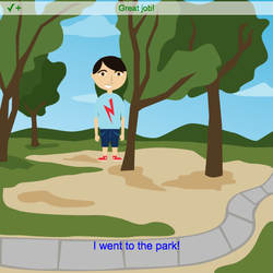 text = codesters.Text("I went to the park!", 0, -200, "blue")