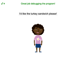 • Debug the program so that the sprite orders food using an index that is within the range.