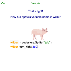 DEMO 1: In this interactive activity, you'll learn about how we use variables to refer to sprites!