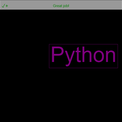 - The function call should look like this: text_stamp("Python", "purple"). Click Run to see it!