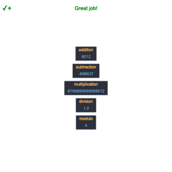 - Change the numbers used in the modulo equation. Click Run and then try other numbers to test it out.