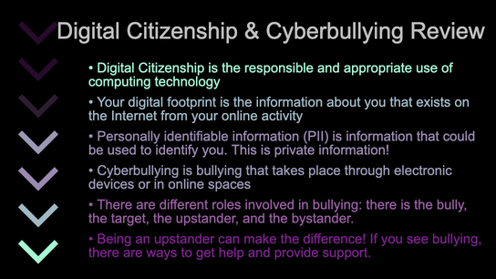 • Look at the stage to review the main concepts from the lesson.