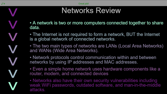 • Once all the main concepts appear, you will get the "Great Job" feedback. Click Submit to finish and turn in the lesson.