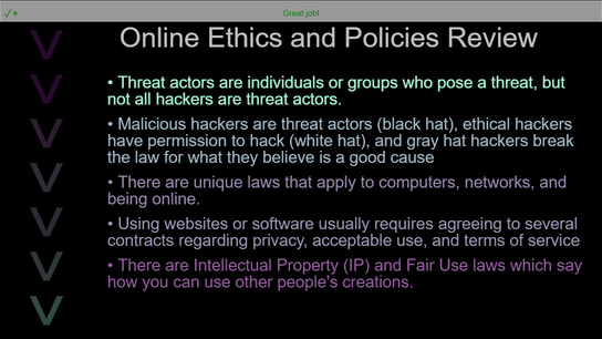 • Once all the main concepts appear, you will get the "Great Job" feedback. Click Submit to finish and turn in the lesson.