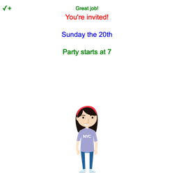 - Change the string to "Party starts at 7".