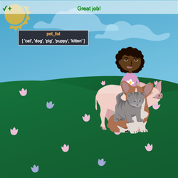 STEP 12: The loop created a kitten sprite, but the list display doesn't show the string "kitten"!