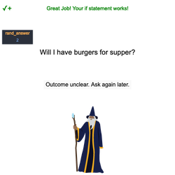 - Test your if statement by clicking Run until choice equals 2. The wizard should say, "Outcome unclear. Ask again later."