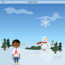 stage.set_background("winter") sprite = codesters.Sprite("person12") sprite.go_to(-125, -150) frosty = codesters.Sprite("snowman") frosty.go_to(100, -125) snow = codesters.Sprite("snowflake3")