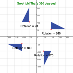 # display = codesters.Text("Click the triangle to show rotation abot the origin!", 0, 200, "green")