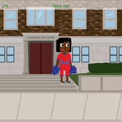 - 单击代码编辑器并将精灵的图像标签从"person1"更改为"cheerleader4" 。
