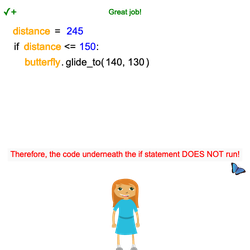sprite.say("We want the program to do something different depending on if the butterfly is close or far away.")