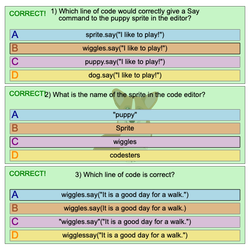 wiggles = codesters.Sprite("puppy") wiggles.say("Bark!")