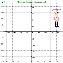 Change the numbers in the .go_to() command so that the sprite in the middle goes to the goal sprite.