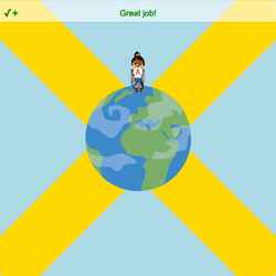 Haga clic en la pestaña ASUNTO, luego haga clic en . Arrastre Rotate about Origin hasta la parte inferior de su código, dentro del bucle. Cambie el número en el .rotate_origin() de 45 a la variable rotate . ¡Observe que todos los sprites giran 90 grados alrededor de la Tierra! A continuación, haremos que los sprites se extiendan por la Tierra.
