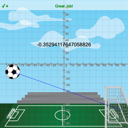 STEP 16: To calculate where our ball should go, we need a new y-coordinate. bally (our current position) + rise (how far we move up) is the answer! But using rise will put the ball in the net every time! We need to use what the rise would be with the slope the user guessed. To get our new rise, we'll use slopeguess = rise/run and solve for rise!