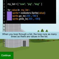 guide.set_text("When the loop repeats, it starts with the next value on the list.")
