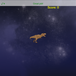 # Program variables (DON'T DELETE!!!) block_speed = -6 # controls how fast the pipes move across the stage block_gap = 200 # controls the space between the top and bottom of each pipe block_interval = 1 # controls how often a new pipe appears gravity = 10 # controls how fast the sprite falls flappiness = 5 # controls how much the sprite moves up # Store and display score score = 0 score_text = codesters.Text("Score: " + str(score), 100, 200, "yellow") ######################################################################## # ADD CODE BELOW THIS LINE # ######################################################################## stage.set_background("space") stage.disable_all_walls() sprite = codesters.Sprite("dinosaur")