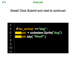 Comandos en un if statement DEBEN estar indentados 4 espacios para hacer correr tu programa. Puedes utilizar tu ratón para colocar el cursor en el editor. Luego, utiliza la barra de espacios para mover la línea de código a la derecha.