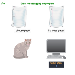 - ¡Depure este programa para que cuando random_choice sea 3 , la declaración if sea verdadera y se ejecute!