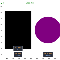 - 计算rect_area (外部和上方.mouse_move() !)的矩形周长,并将其命名为rect_perim 。请记住,周长是高度的 2 倍 + 宽度的 2 倍。