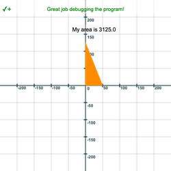 • 点击运行以查看舞台上的错误。三角形的面积不正确:太大了!