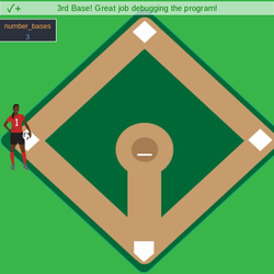 • 调试程序,让运动员在每次按下时运行随机数量的垒 (1 - 4)跑。