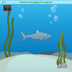 • 调试此程序,以便在选择3时出现鲨鱼。