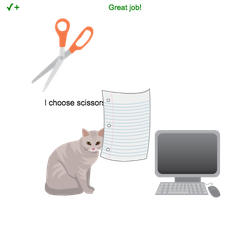STEP 12: If the random number is 2, we'll have the computer choose "paper" and make a paper sprite appear.
