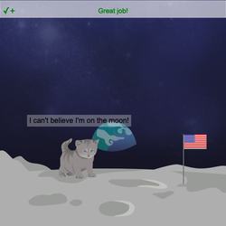 • Change the string in the new .say() command to "I can't believe I'm on the moon!"