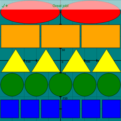 - Click Run. Notice that the shapes on the stage are not spaced out evenly like in the answer image.
