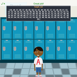 - This program includes a list of data for the heights (in inches) of 100 middle school students.