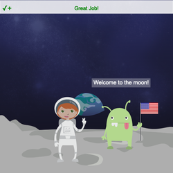 Notice the 2 second pause between glorp saying "Welcome to the moon!" and the Great Job! text on the stage.