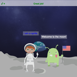 - Change the variable name in front of .say() from sprite to astro so that the astronaut sprite speaks.