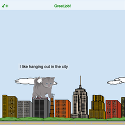 - Cambia la cadena en .say() a "I like hanging out in the city."
