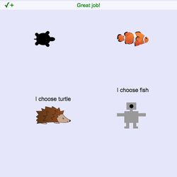 - Cambia la cadena en .ask() para pedirle al jugador que elija otros 3 personajes en su lugar, como tortuga, pez, tiburón.