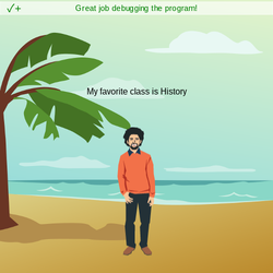 - Depura el programa para que el sprite complete la oración correctamente.