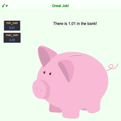 - Notice that every time you guess incorrectly, the piggy bank tells you how many of a specific coin is in the bank! (For example, first pennies, then nickels, etc).