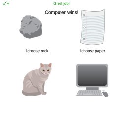 - In the most recent if-statement, change the first test value from "yes" to "rock".