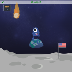 Tenga en cuenta que cada vez que el sprite atrapa un meteorito, el alienígena se mueve hacia el centro y el meteor se esconde. ¡Eso no es lo que queremos! Actualizaremos los comandos en el evento en las próximas actividades.