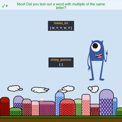 • 点击运行并输入错误作为单词猜测。当你猜r两次会发生什么?