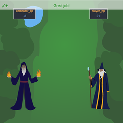 - 每个巫师都需要三行代码来施法和更新生命值。将所有这些都包含在您的循环中!